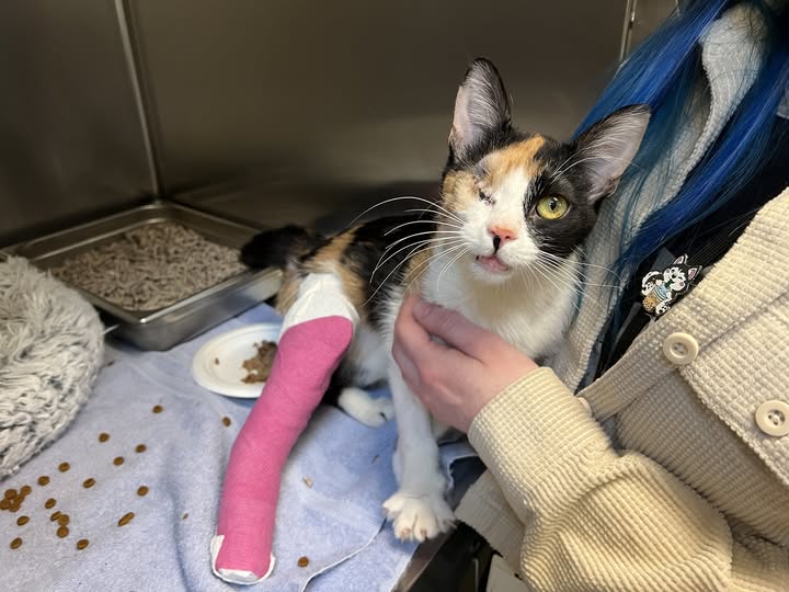 Sapphire is a sweet, resilient three-year-old cat who was found lost and alone, desperately in need of help. When Sapphire arrived, she was suffering from fractured ribs, a broken leg, an open wound and an injured eye. Despite everything, she was still purring and soaking up every bit of love she could get. Our incredible veterinary team provided pain relief, cleaned her wound and placed a splint on her broken leg. Sadly, her injured eye couldn’t be saved and removing it was needed for her to live a happy, healthy life. Sapphire still has a long road to recovery ahead, but thanks to the philanthropic support of our caring community, she's making incredible progress.